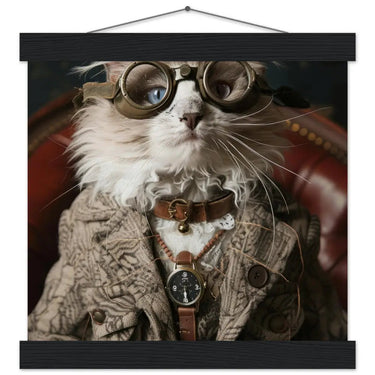 Schulposter - Steampunk-Vintage LaPerm Katzenmotiv, mattes FSC-Papier, magnetische Holzleisten | St Tropez Art