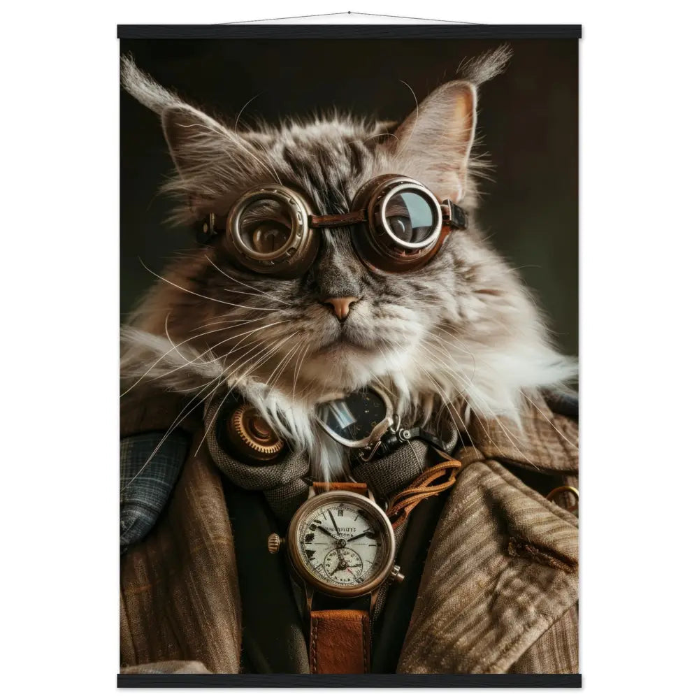 Schulposter - Männliche Orientalisch Langhaar-Katze, Steampunk-Stil, antike Uhr mit Lederband, bronzefarbene Brille | St Tropez Art