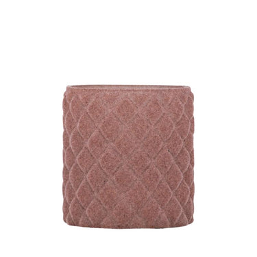 Teelichthalter aus Glas, rosa Farbe, mit Flocking-Oberfläche, Rautenform, handgefertigt, M – Amella | PTMD