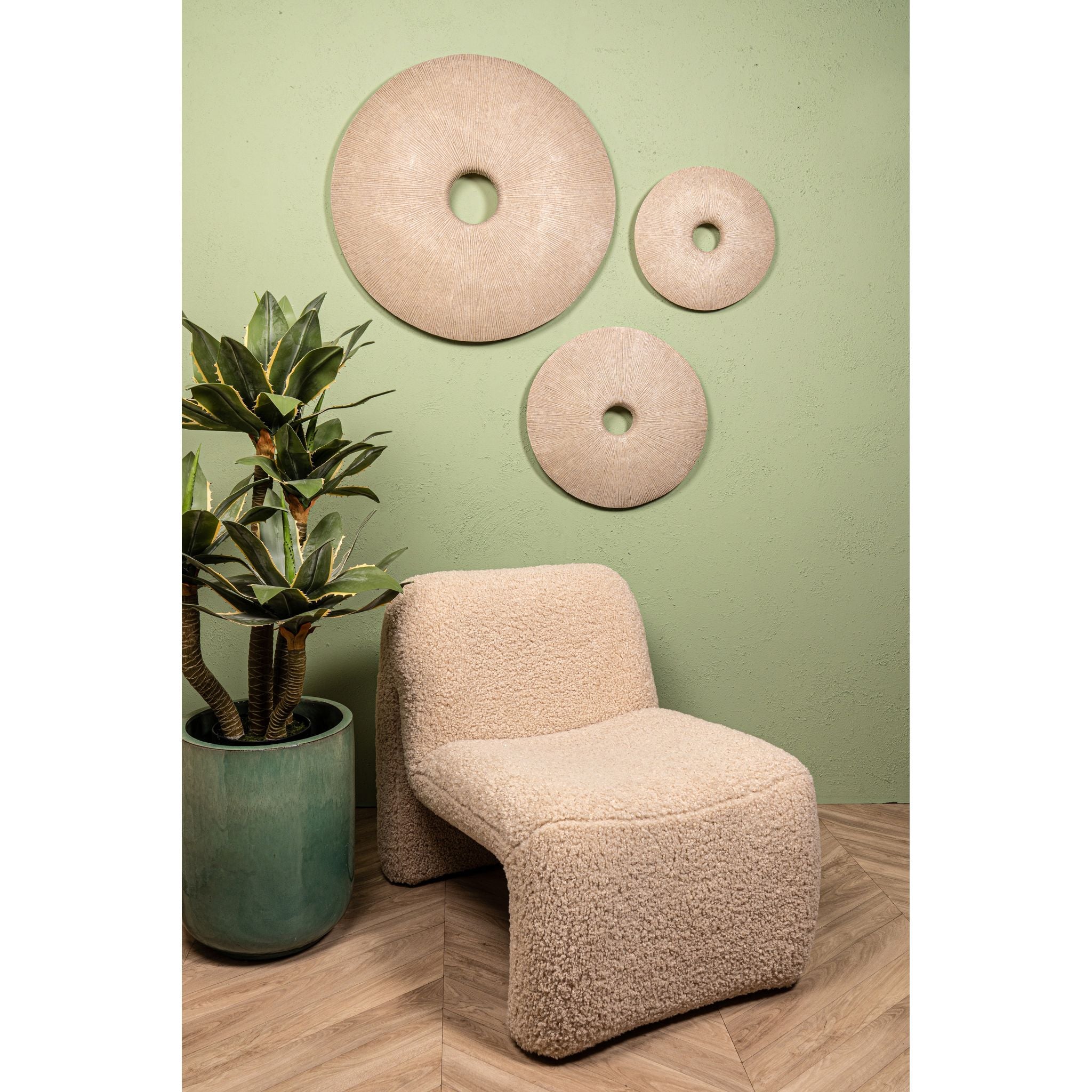 Die Kathelle Cremefarbene Runde Wandplatte in Sandstein-Optik S aus Polyresin ist ein stilvoller Dekorakzent, inspiriert von der sanften Eleganz natürlicher Gesteinsformationen. Ihre runde Silhouette und der zarte Cremeton verleihen deinem Zuhause eine ruhige und harmonische Ausstrahlung und machen sie zu einer anspruchsvollen Ergänzung moderner Wohnräume. Die von Sandstein inspirierte Oberflächenstruktur sorgt für feine Tiefe und organische Bewegung und lässt Licht und Schatten auf elegante Weise über die Fläche spielen.