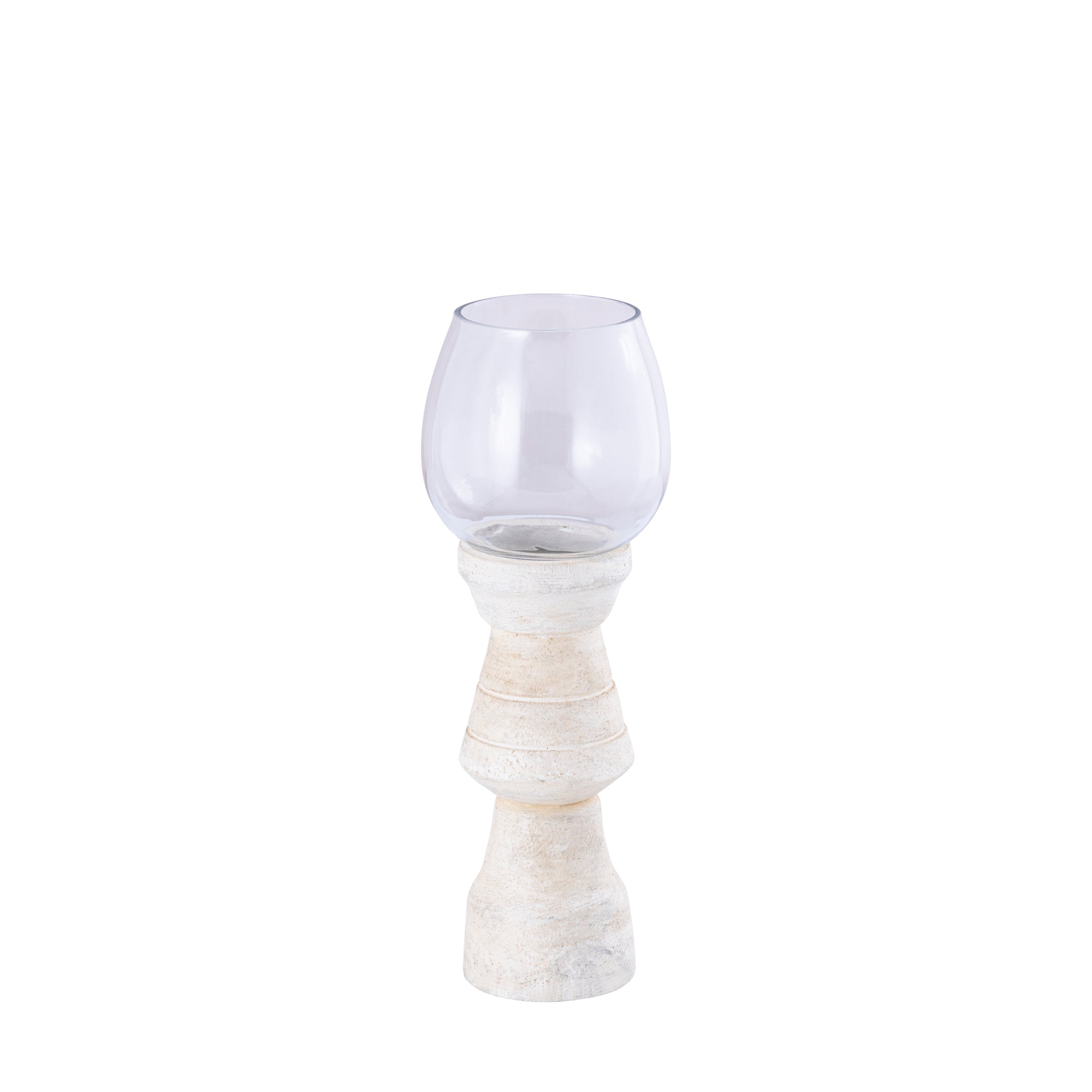 Windlicht – Mangoholz Design, Handgefertigte Verarbeitung, Klarglas Einsatz, Creme Farbton, M – Qez | PTMD
