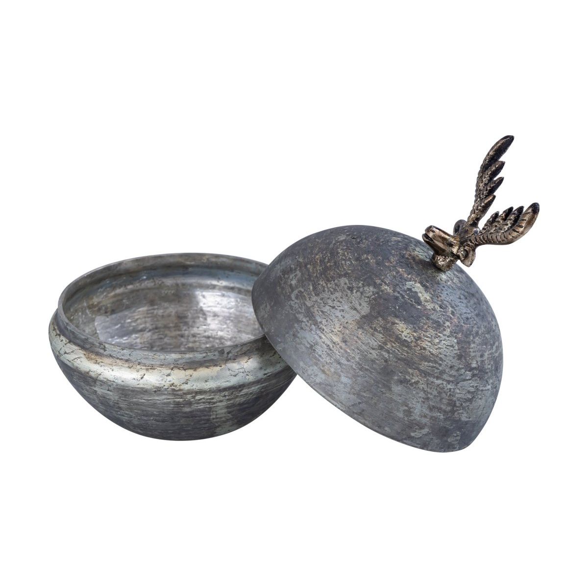 Die PTMD Altya Silver Aufbewahrungsbox vereint Funktionalität mit dekorativem Charme. Gefertigt aus hochwertigem Glas und mit einem detailreich gestalteten Hirschkopf versehen, wirkt sie edel und zugleich verspielt. Jede Box wird handveredelt, wodurch kleine Unterschiede in Verarbeitung und Oberfläche die Einzigartigkeit jedes Stücks unterstreichen. Sie eignet sich ideal zur Aufbewahrung kleiner Gegenstände oder als stilvolles Dekorelement in Wohnräumen und auf Sideboards.