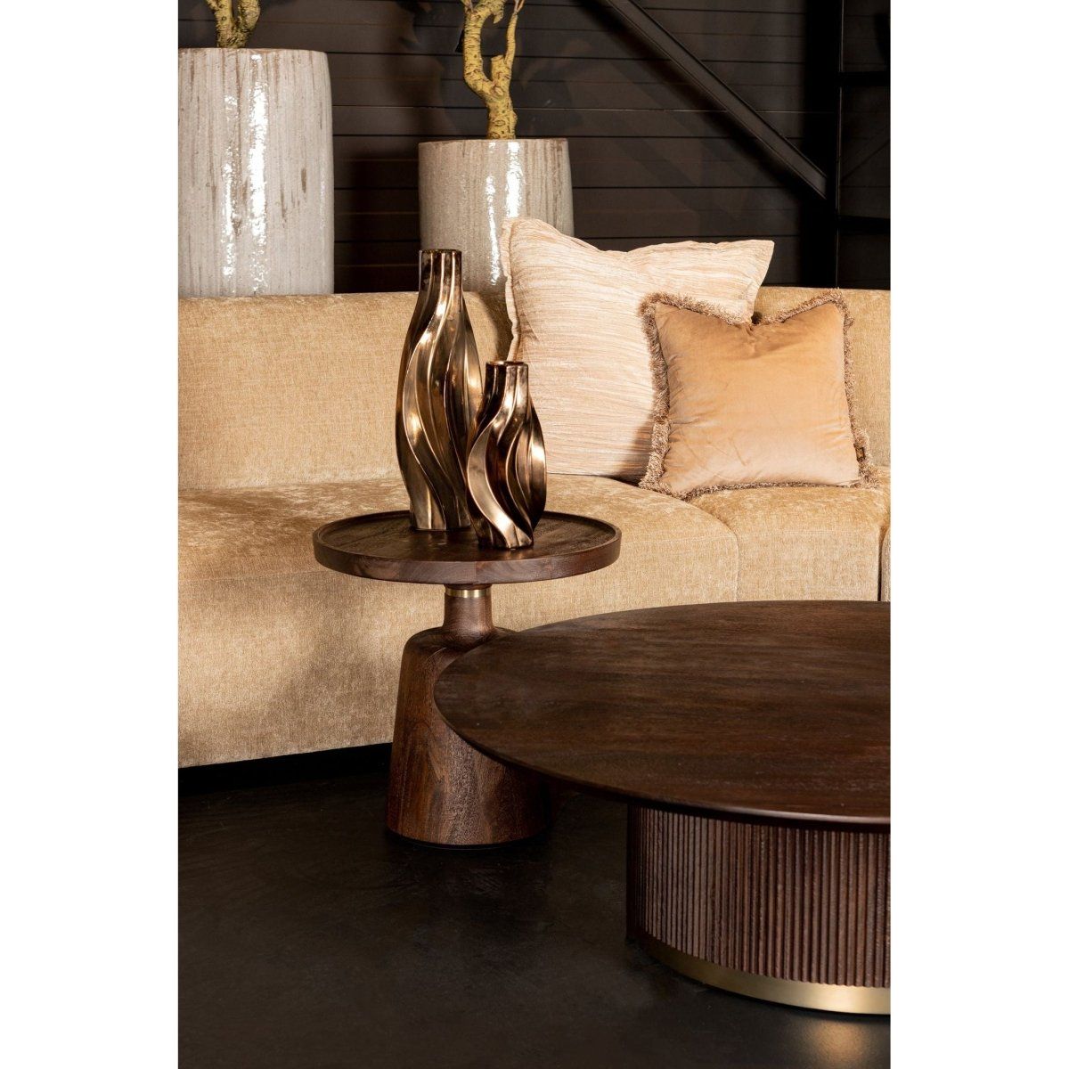 Mit dem Beistelltisch - Veas 50.0 x 50.0 x 50.0 cm Braun Gold holst du dir ein echtes Highlight in dein Zuhause. Die hochwertige Verarbeitung sorgt für Langlebigkeit und zeitlosen Stil. Perfekt für Designliebhaber, die auf Qualität setzen.