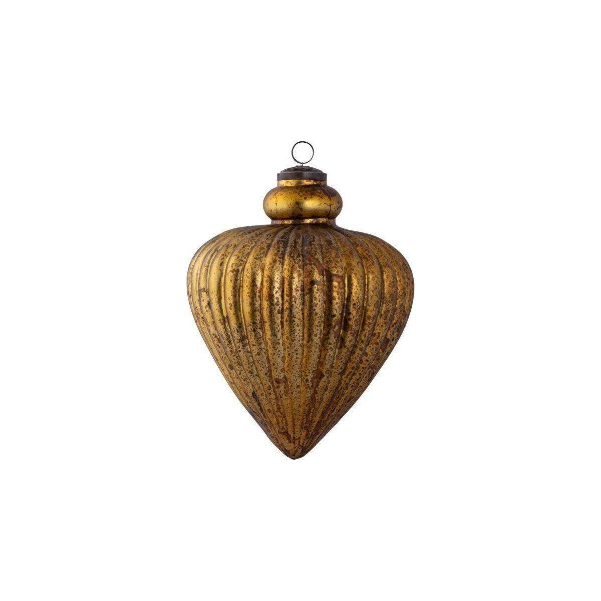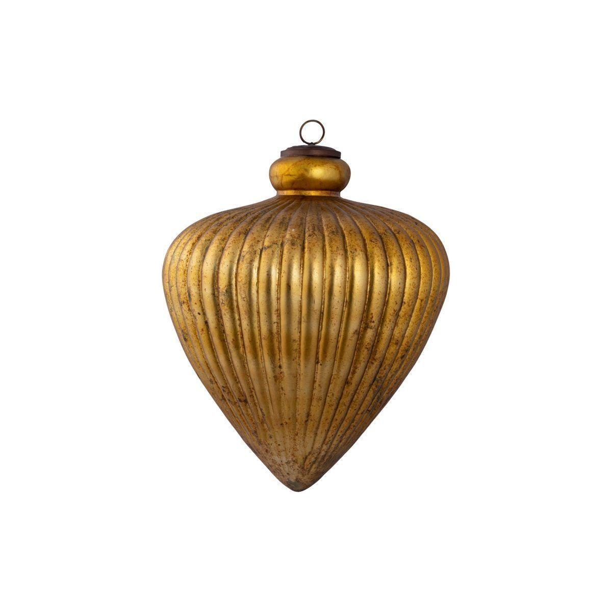 Die elegante Christbaumkugel „Rickon Gold“ überzeugt in der Größe von rund 16,5 × 16,5 × 20 cm mit ihrer klaren, runden Grundform und einer feinen, verjüngten Spitze – ein klassisches Ornament mit feiner, modernen Gestaltung. Das hochwertige goldfarbene Finish verleiht der Kugel einen warmen Glanz, während die Fläche mit strukturierten Linien und Akzenten spielt, die das Licht im Raum eindrucksvoll reflektieren.
