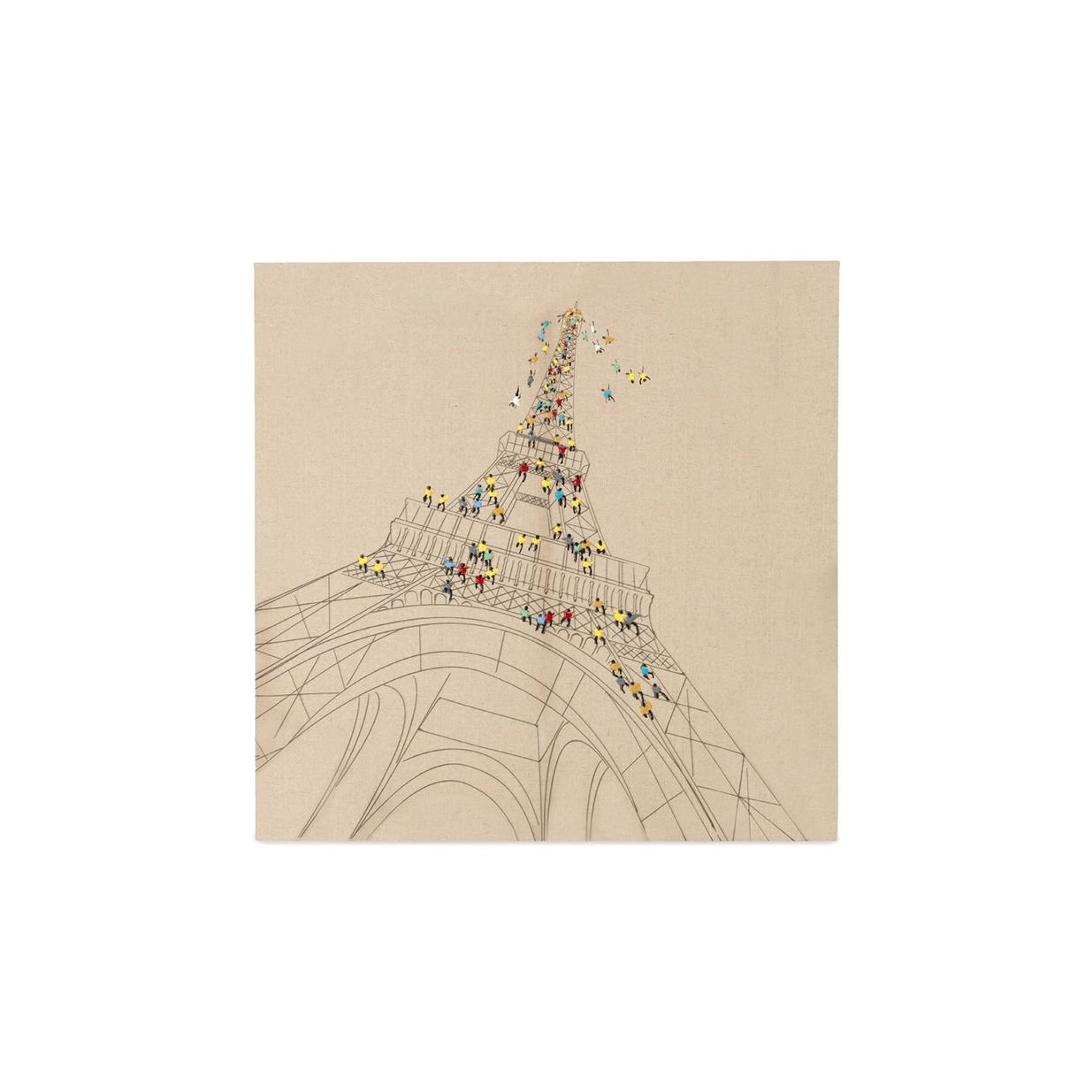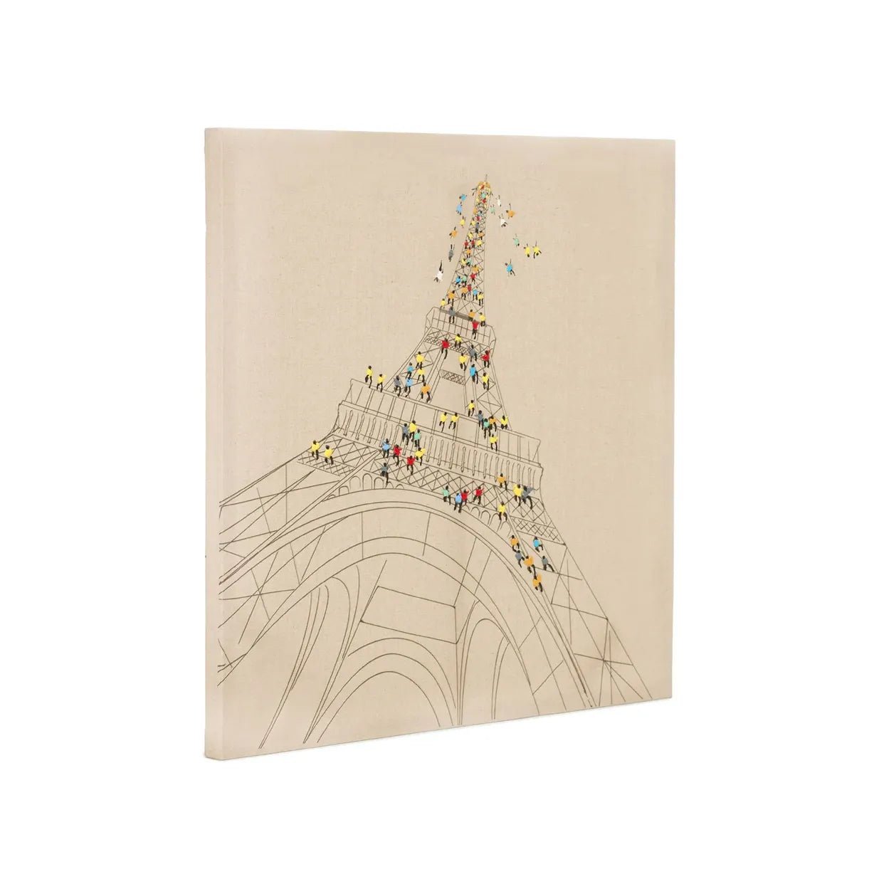 Das Motiv zeigt den Eiffelturm, umgeben von einer Vielzahl kleiner, bunter Figuren, die dem Bild Lebendigkeit und Tiefe verleihen. Die Kombination aus minimalistischer Farbgebung und detaillierter Darstellung macht dieses Kunstwerk zu einem besonderen Akzent in Ihrem Zuhause. Ob im Wohnzimmer, Flur oder Büro – dieses Bild bringt ein Stück Pariser Flair in Ihre Räume und setzt stilvolle Akzente in Ihrem Interieur.