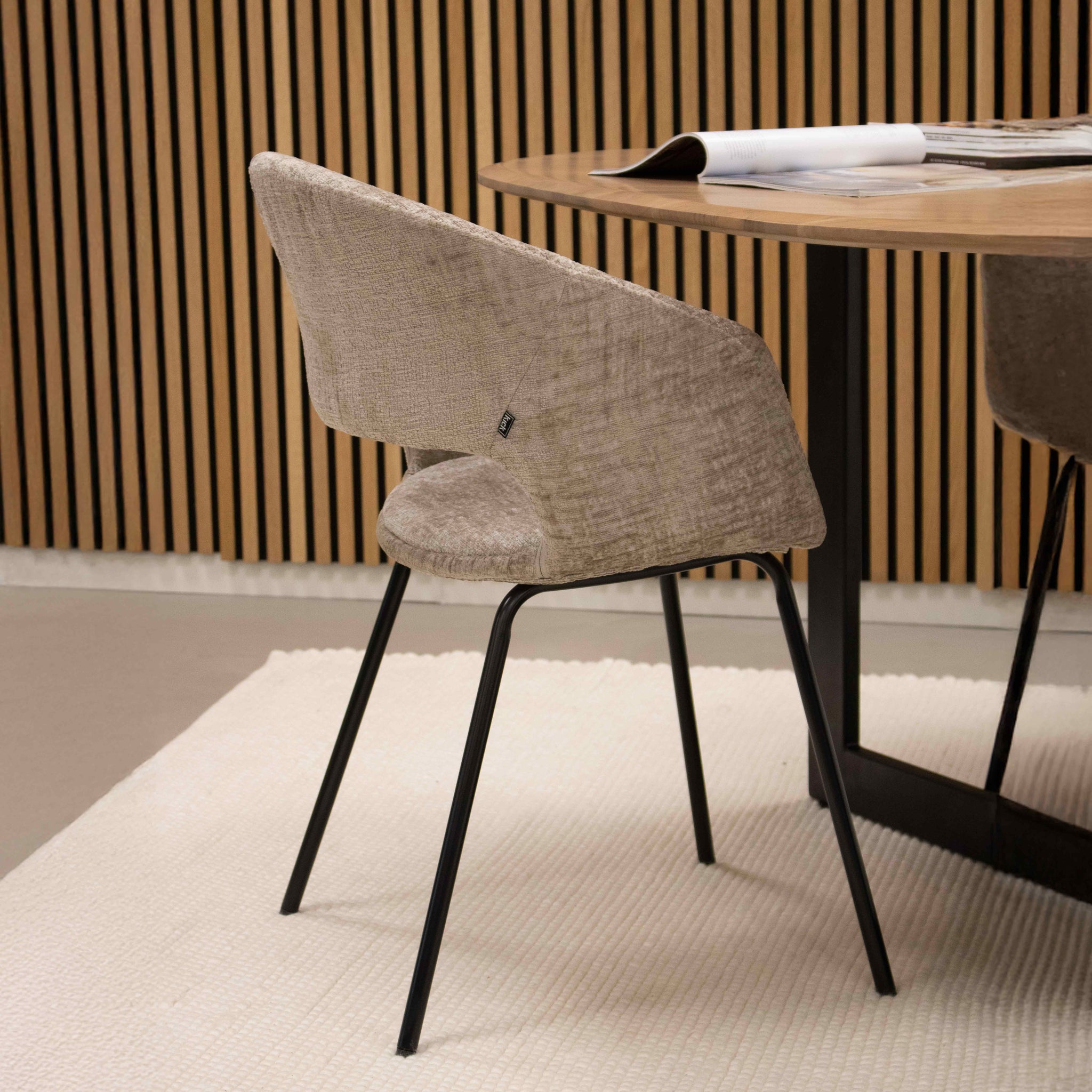 Esszimmerstuhl Weicher Texturstoff Moderne Rückenlehnen-Ausformung Schwarzes Metallgestell – Mette | Kick Collection
