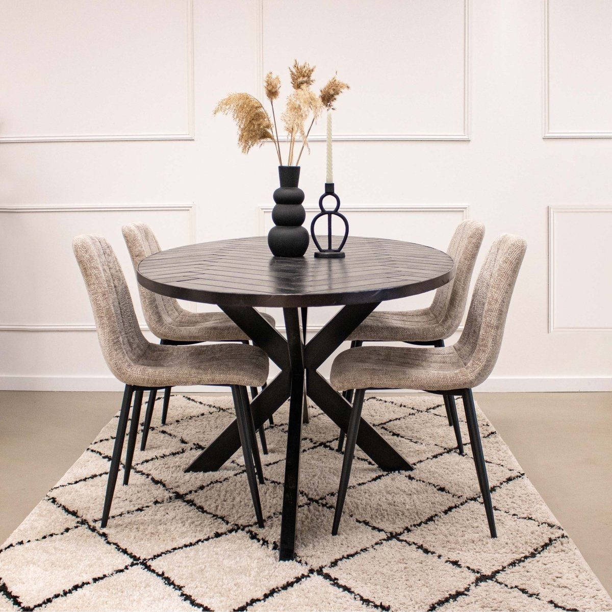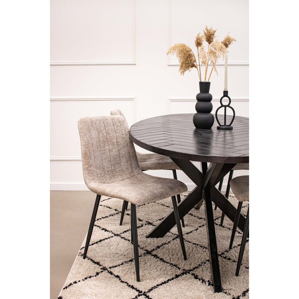 Esszimmerstuhl Weicher Chenille-Stoff, Schwarzer Metallrahmen, Gepolstert – Sem | Kick Collection