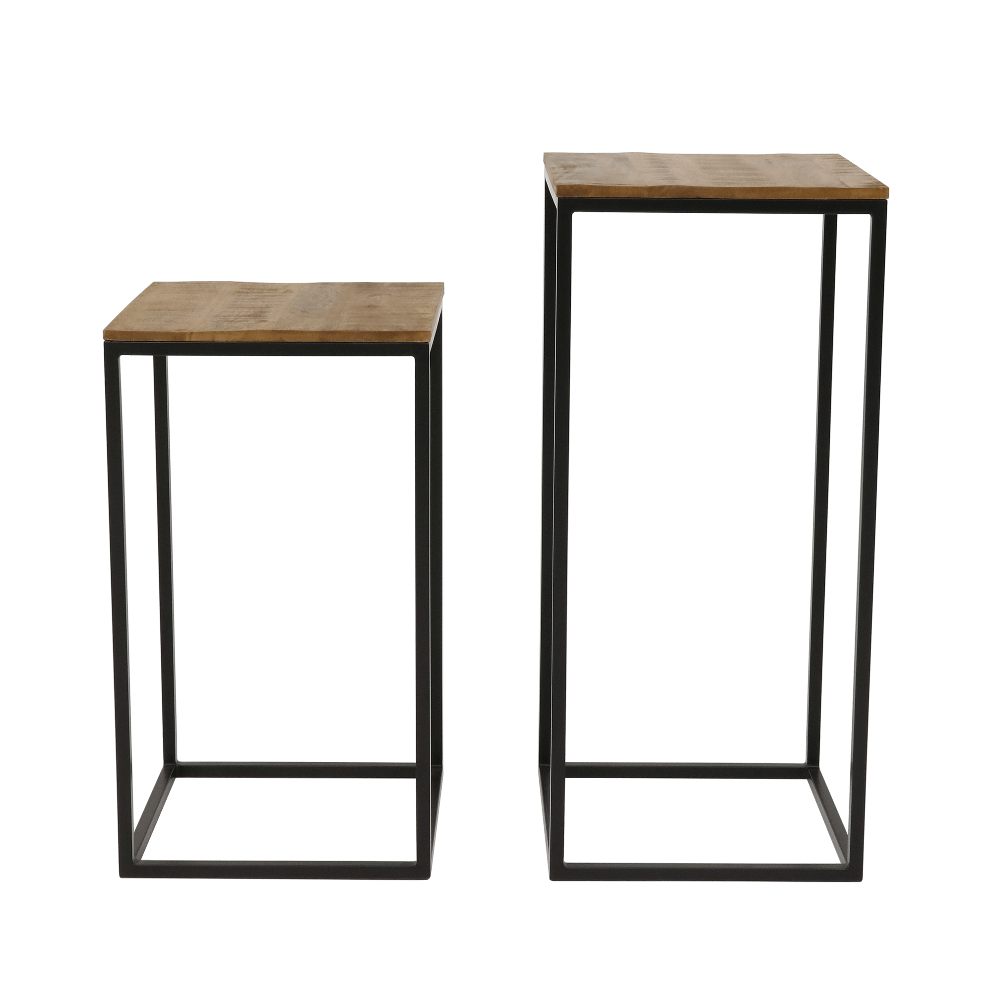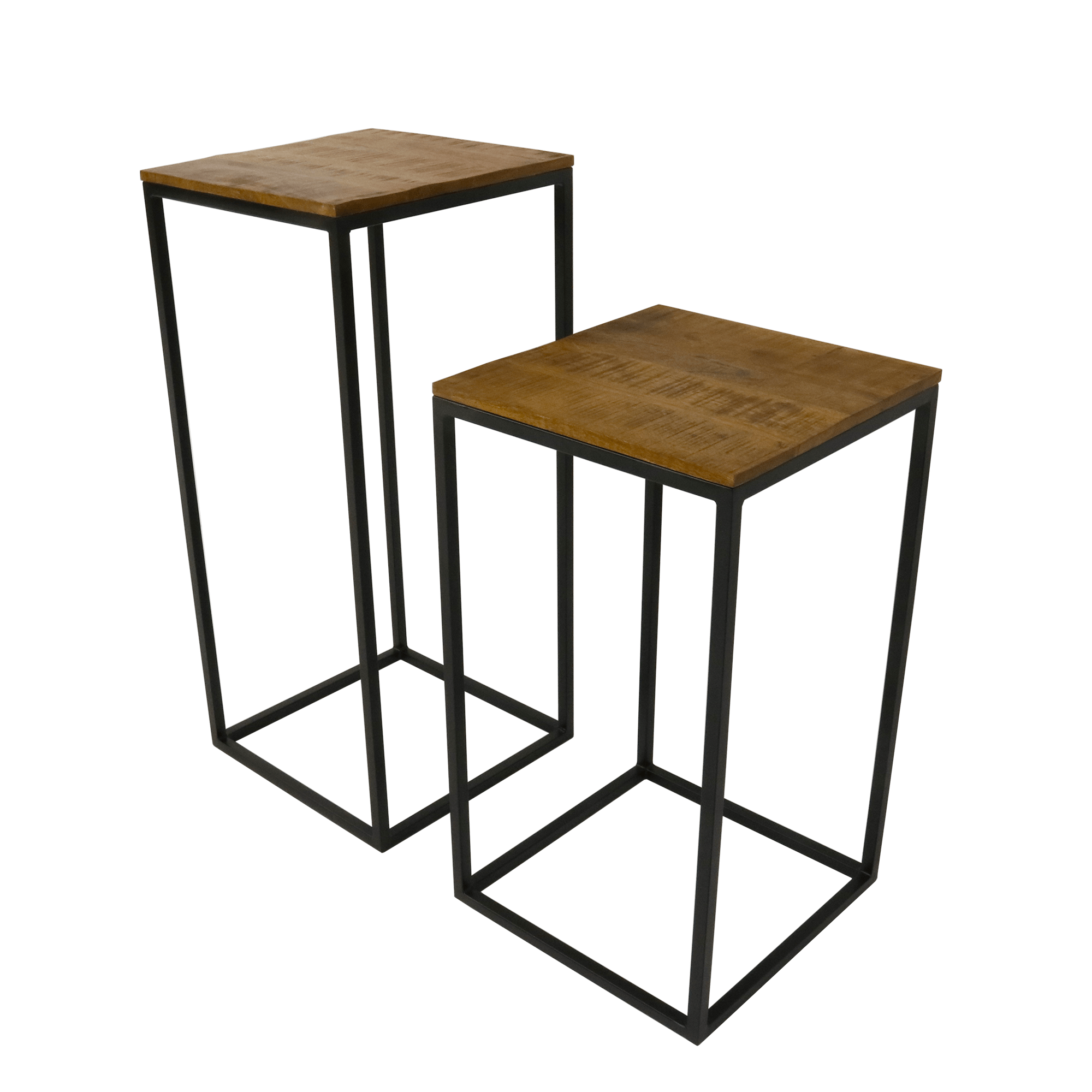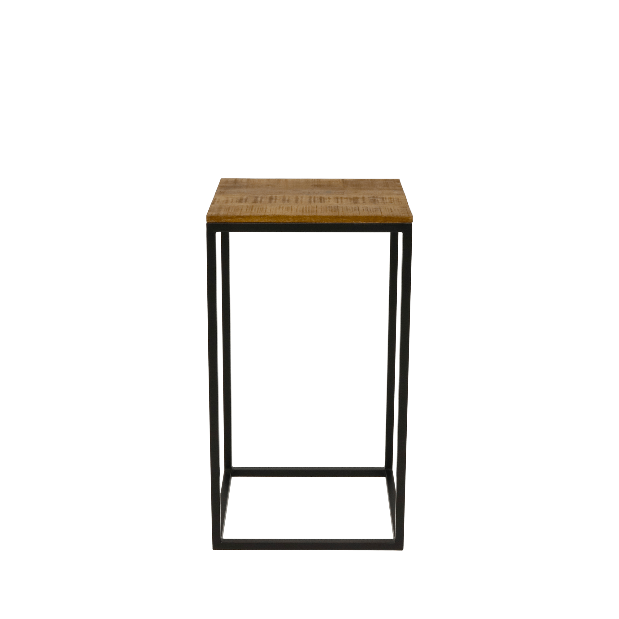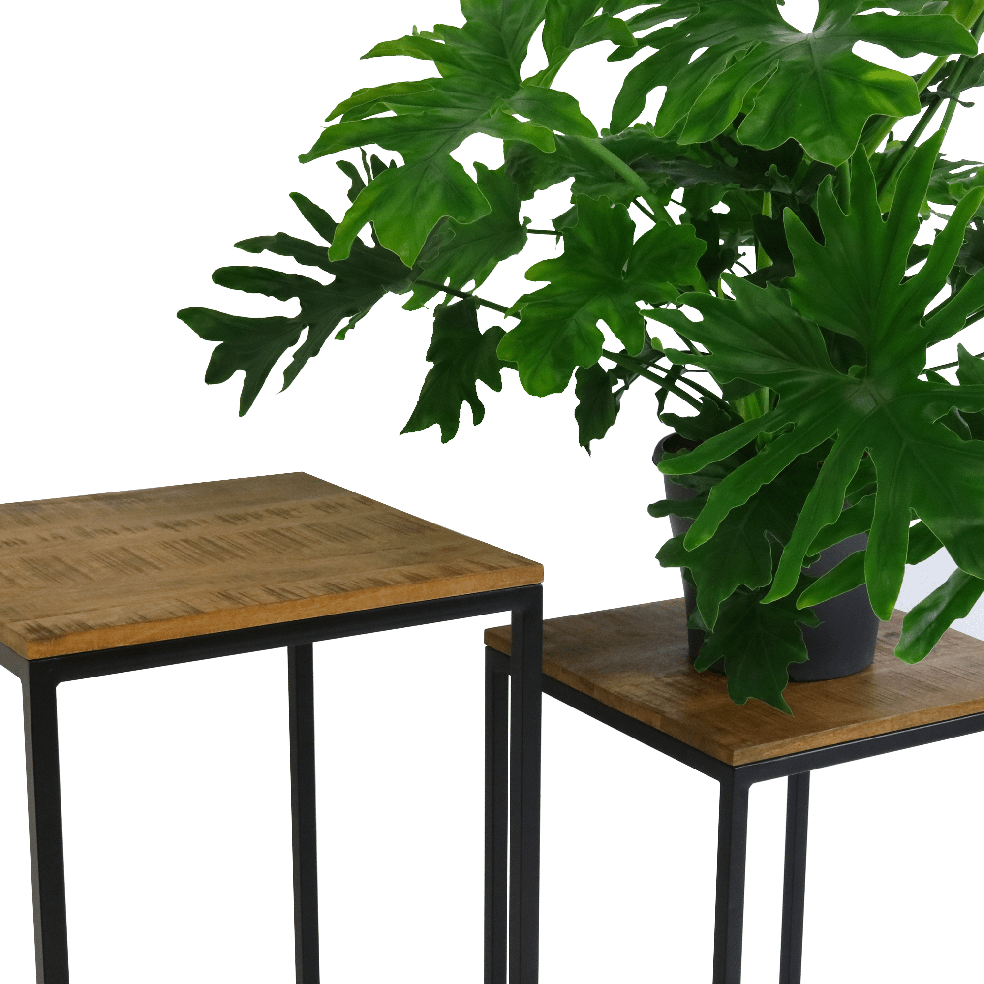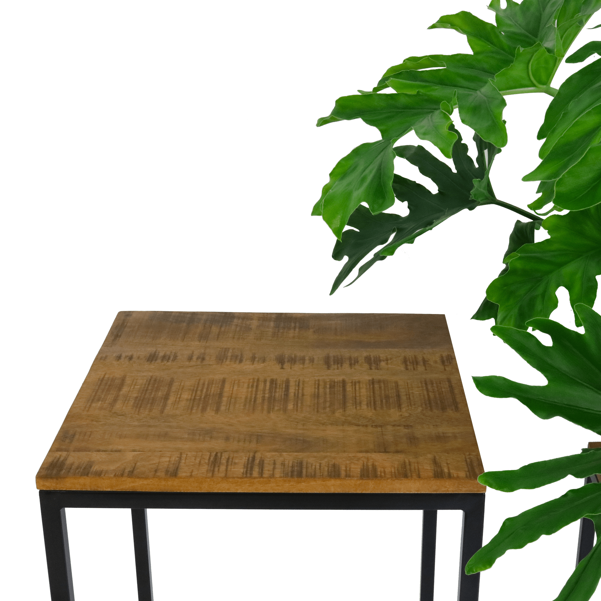 Pflanzensäule Mangoholzplatte, Schwarzes Metallgestell, Kompakt 45 × 45 × 80 cm – Milo | Kick Collection