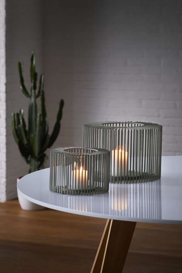 windlicht pulverbeschichteter Stahlkäfig Glaszylinder für Windschutz eleganter geometrischer Rahmen – Oslo | Philippi