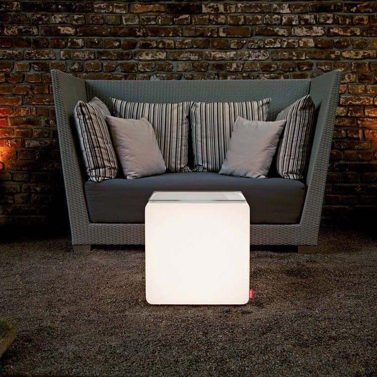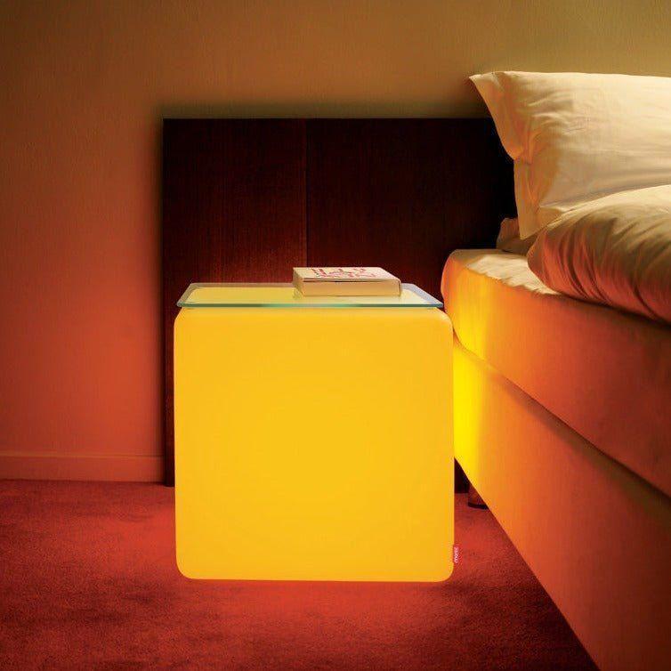 Cube dient als Sitzmöbel, Tisch, Dekorationsobjekt oder indirekte Lichtquelle. Der leuchtende Sitzwürfel ist für den privaten wie für den professionellen Einsatz ideal geeignet.