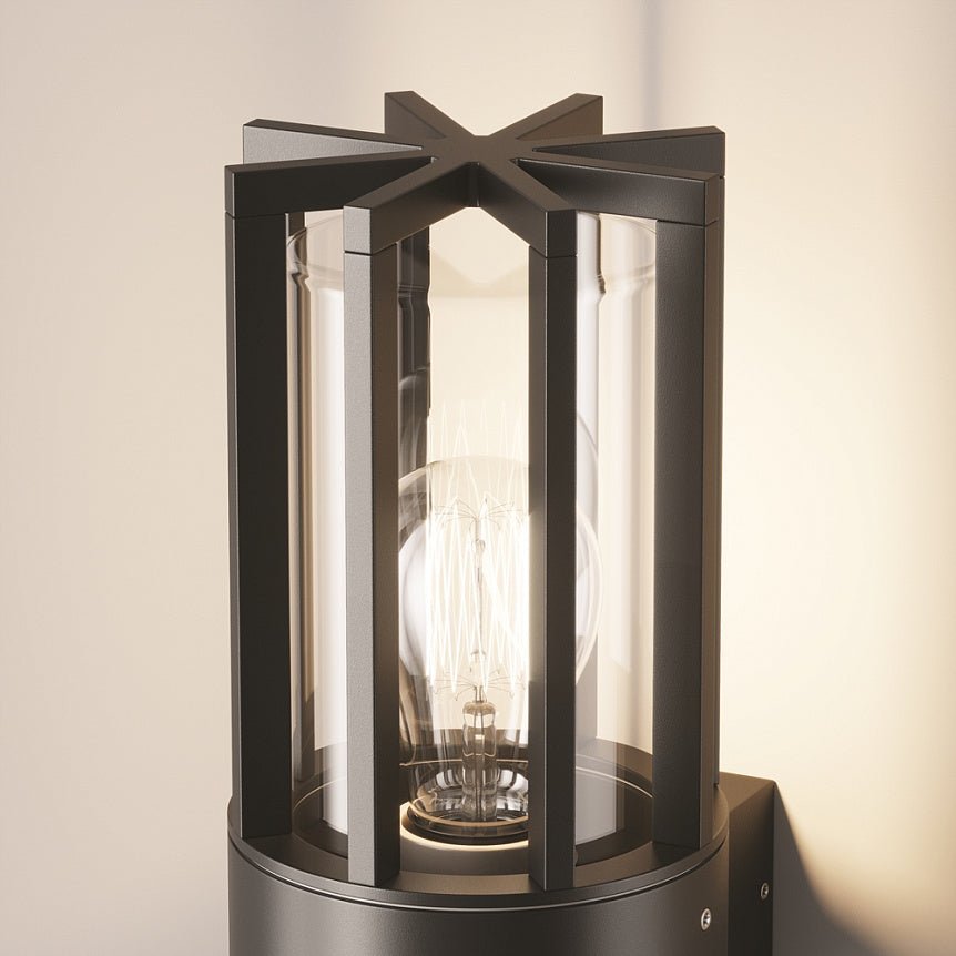 Die Maytoni O453WL-01GF Barrel Wandleuchte vereint modernes Design mit praktischer Funktionalität für den Außenbereich. Ihr rechteckiges Gehäuse aus graphitfarbenem Aluminium beherbergt einen transparenten Glasschirm, der durch ein dekoratives Metallgitter geschützt ist. Mit einer E27-Fassung für Leuchtmittel bis zu 15 W (nicht enthalten) ermöglicht sie eine flexible und individuelle Beleuchtung. Dank der Schutzart IP54 ist die Lampe spritzwassergeschützt und eignet sich ideal für Terrassen, Eingangsbereiche oder Gartenwände.