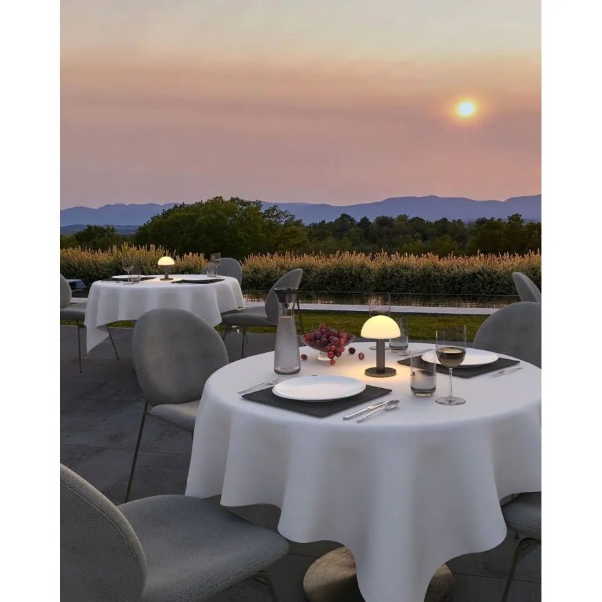 Die kabellose Bergamo Akku-Tischleuchte von Villeroy & Boch kombiniert elegantes Design mit praktischer Funktionalität. Ihr modernes, schwarzes Gehäuse aus Aluminium ist wetterfest nach IP65 und eignet sich sowohl für den Innen- als auch für den Außenbereich. Über den integrierten Touch-Dimmer mit Memory-Funktion lassen sich Helligkeit und Farbtemperatur (2200–2700 K) stufenlos einstellen, sodass jederzeit die passende Lichtstimmung entsteht.