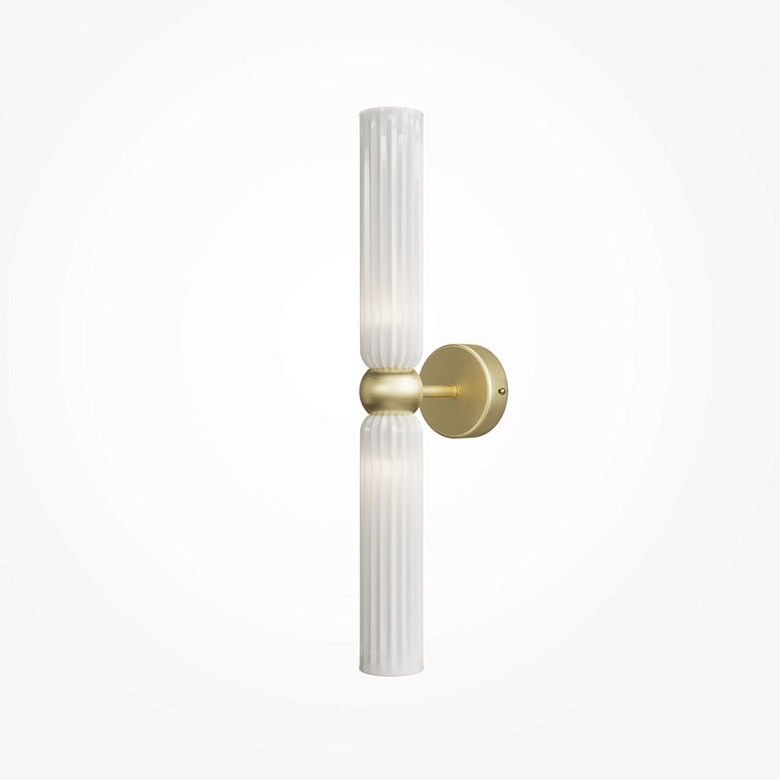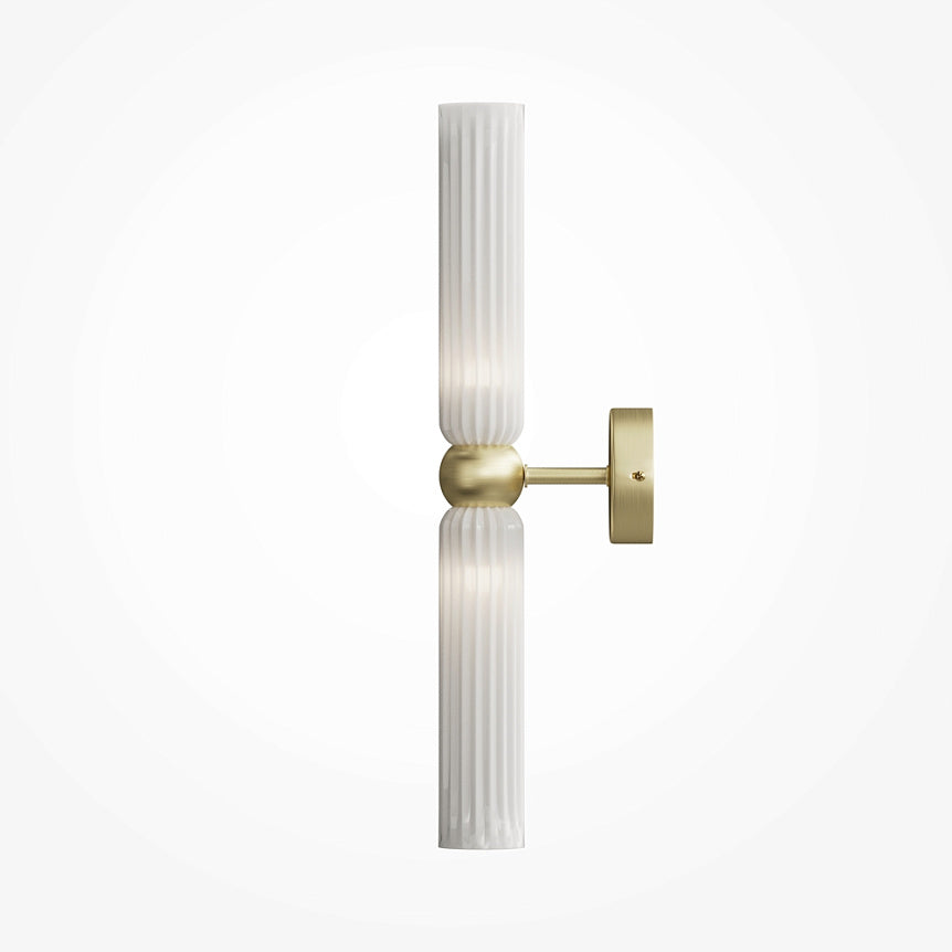 Wandleuchte Gold, 2 satiniert-weiße gerippte Glasschirme, 2× G9 3,5 W – Antic