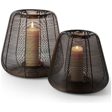 Windlicht aus handgewickeltem Stahldraht mit goldfarbenem Innenfinish und modernem Design – Luanda | Philippi